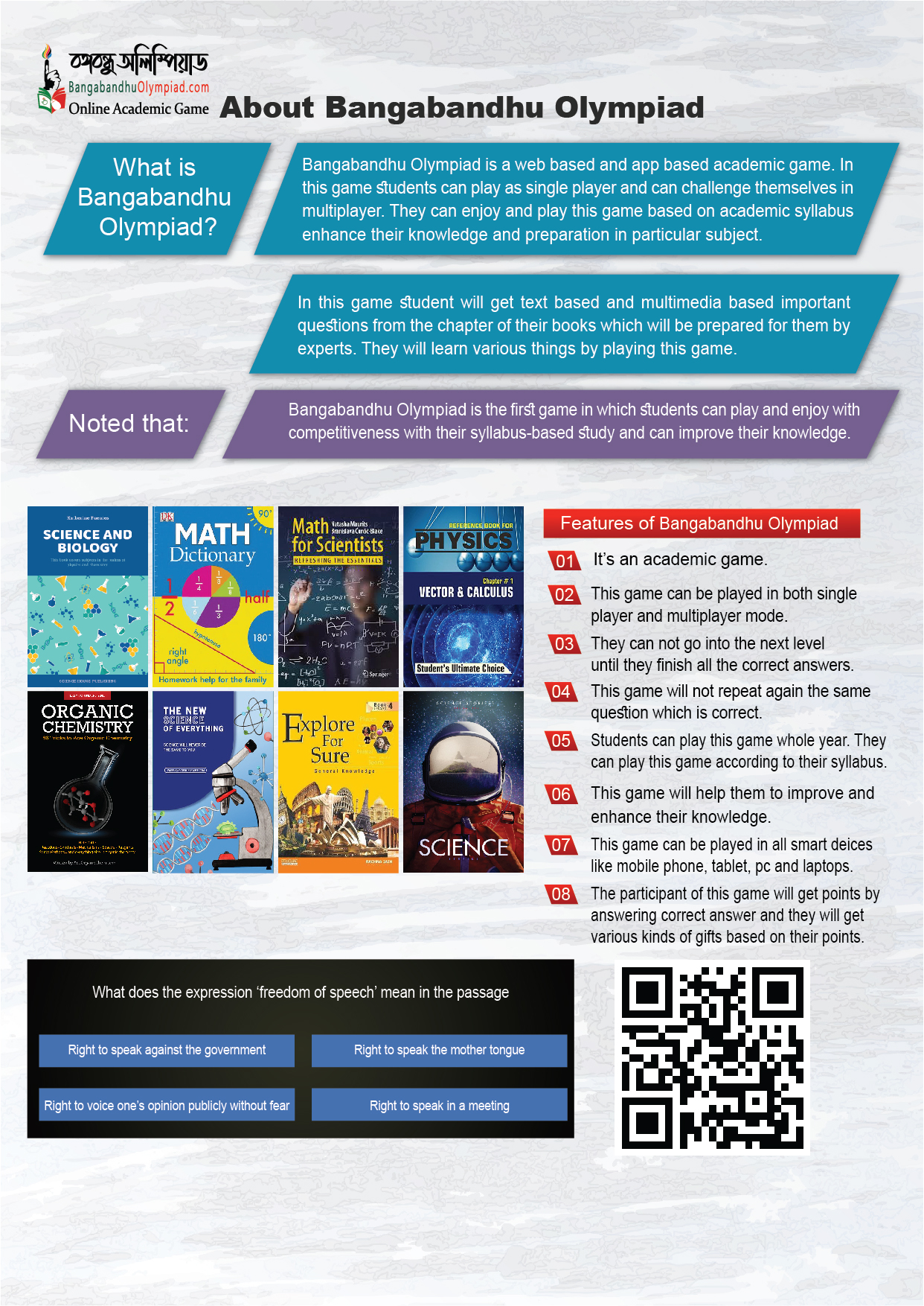 Note that: Bangabandhu Olympiad is the first game in which students can play and enjoy competitiveness with their syllabus-based study and can improve their knowledge.